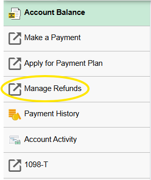 4. Click Manage Refunds to check or update your refund preferences